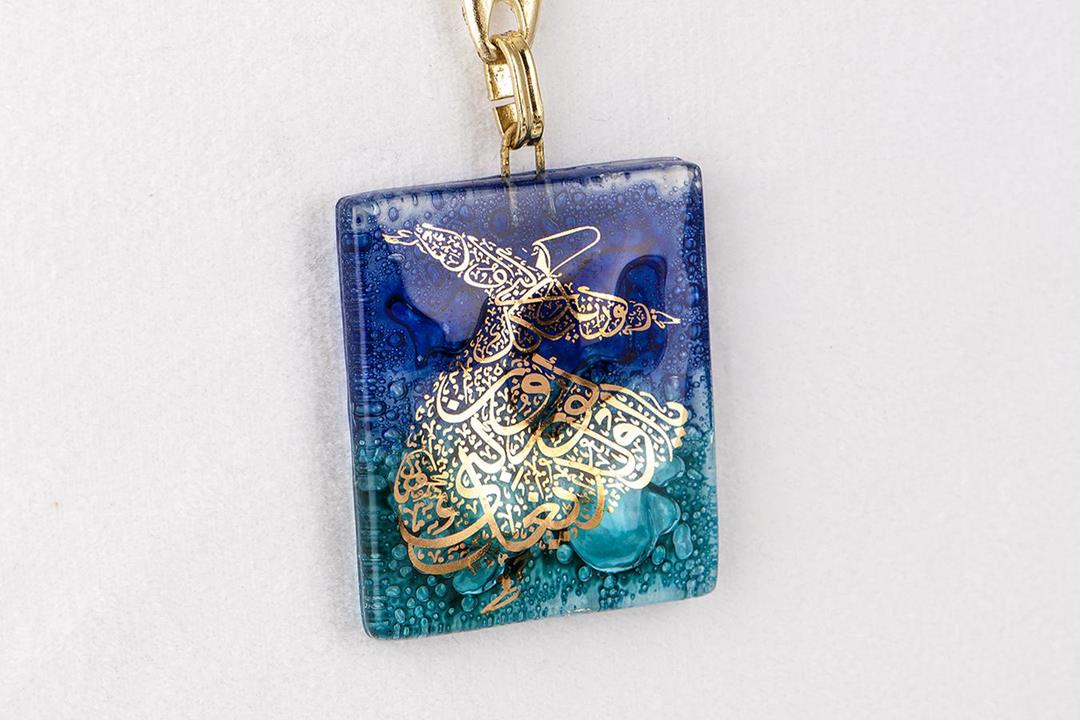 Cam füzyon mavi-turkuaz bouble semazen anahtarlık. %10 altın içerir.
