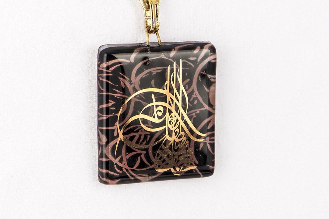Cam füzyon kahverengi-siyah tuğra anahtarlık. %10 altın içerir.