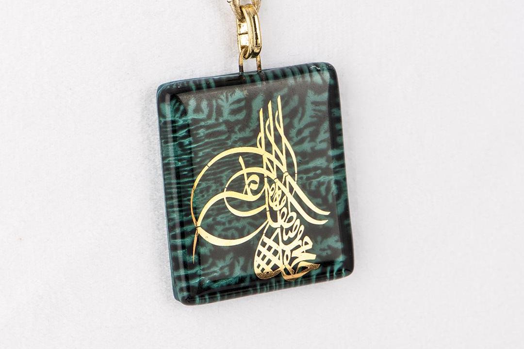 Cam füzyon yeşil-siyah tuğra anahtarlık. %10 altın içerir.
