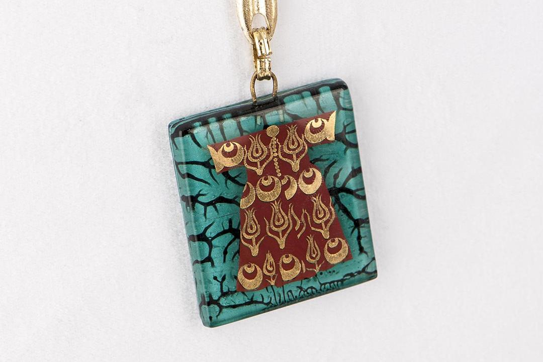 Cam füzyon yeşil-siyah kaftan anahtarlık. %10 altın içerir.