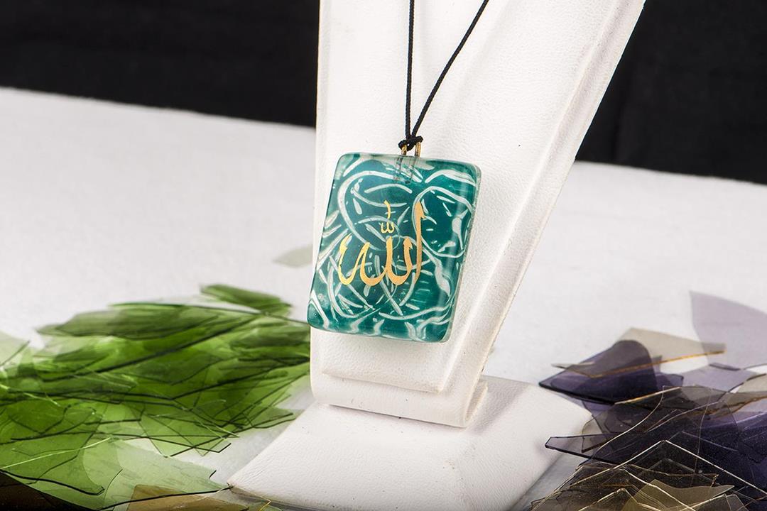 Cam füzyon mavi Allah kolye. %10 altın içerir
