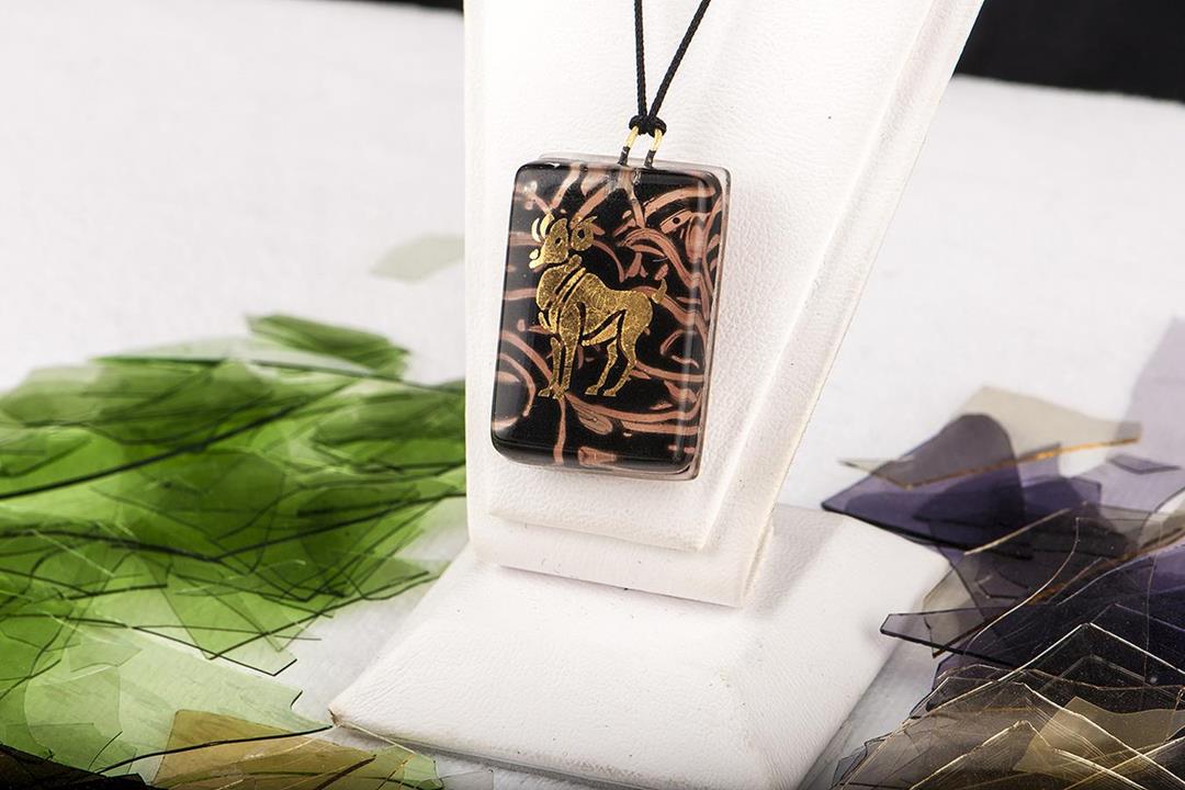 Cam füzyon kahverengi koç burcu kolye. %10 altın içerir