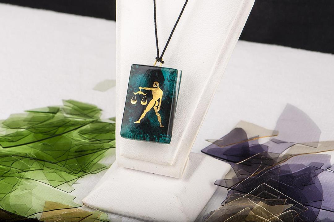 Cam füzyon kobalt terazi burcu kolye. %10 altın içerir
