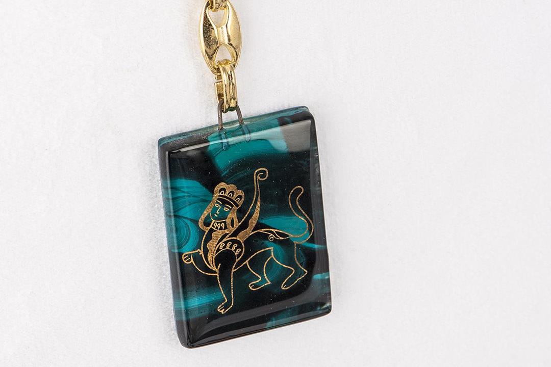 Cam füzyon Anadolu Medeniyeti turkuaz-siyah anahtarlık. %10 altın içerir